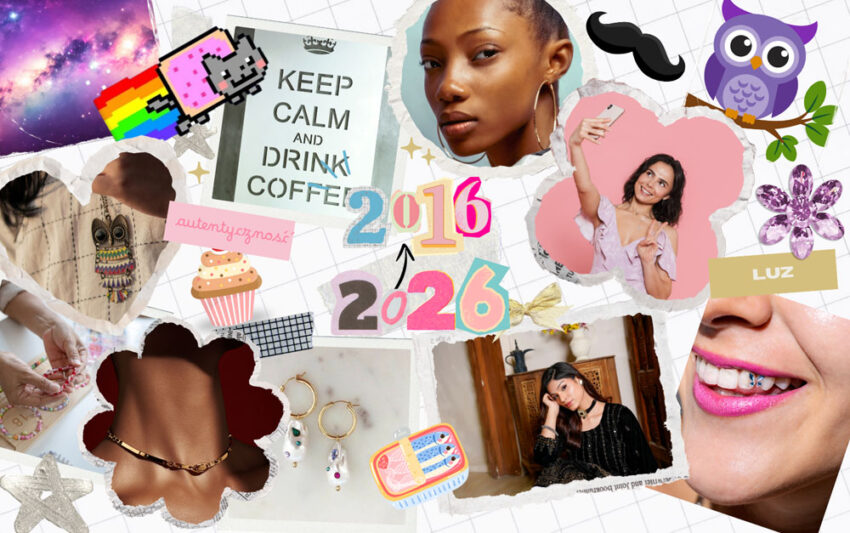 Rok 2026 zaczął się jak lekka powtórka z 2016 – social media zalały relacje w stylu „2026 to nowy 2016”. Filtry udające stare Instagramowe presety i nostalgiczne rolki z podpisami „nie chcę nowego roku, dajcie mi dobry, sprawdzony, lekko używany 2016” są wszechobecne. Ten trend to nie tylko mem, ale też realny powrót tamtej estetyki. Od chokerów, przez oversize’owe kolczyki, aż po selfie robione “z góry” i montowanie filmików, które bardziej przypominają Vines niż Reels. W sieci mówi się, że tęsknimy raczej za „vibe’em” 2016 niż konkretnym rokiem, za mniej algorytmicznymi feedami, bardziej spontaniczną zabawą modą i biżuterią oraz za czasem, w którym Internet wydawał się lżejszy i mniej obciążający niż dziś. I chociaż w roku 2016 w żelaznym uścisku trzymały nas symbol nieskończoności, grafika z okularami i z jakiegoś powodu specyficzny kształt wąsa!? Naszymi sercami zawładnęła nostalgiczna tęsknota za czasem, kiedy byliśmy bardziej autentyczni i spontaniczni, kiedy dobra zabawa była ważniejsza niż osiągnięcie perfekcji.