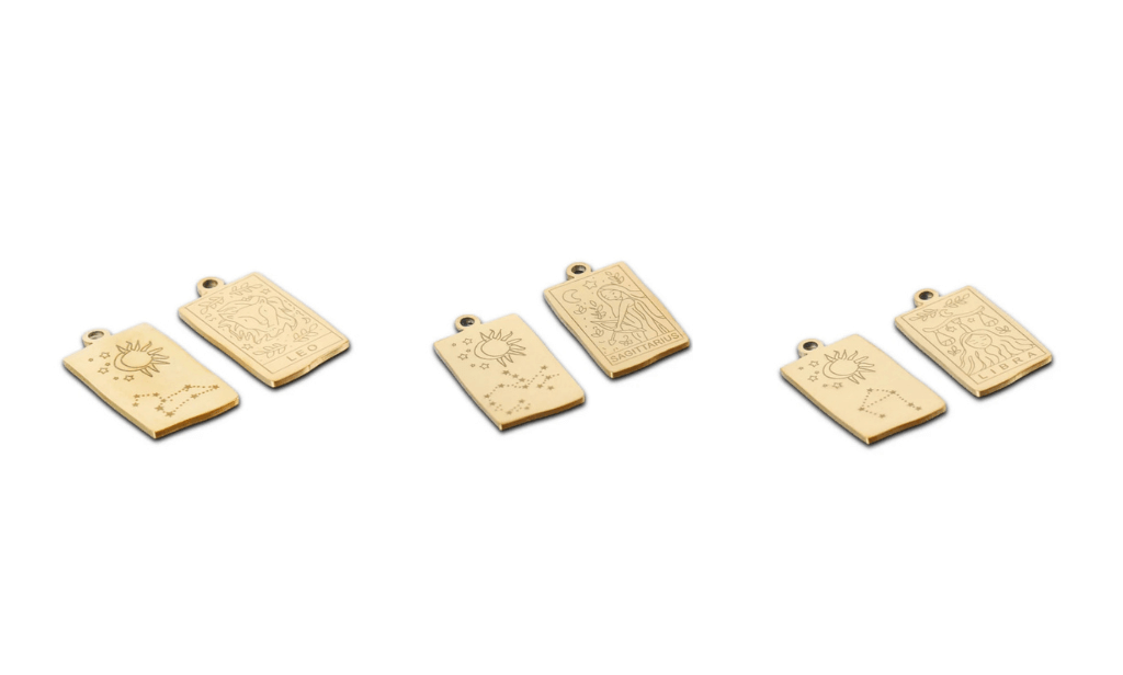 Zawieszki prostokątne to najbardziej zdobione propozycje w kolekcji Manzuko. Wykonuje się je z pozłacanej stali chirurgicznej i mają rozmiar 26×13 mm. Z jednej strony zawieszki znajduje się grawer przedstawiający konstelację znaku zodiaku. Na rewersie widnieje rysunek postaci symbolizującej dany znak oraz napis z angielską nazwą znaku. To prawdziwe cacka, które zachwycą każdego miłośnika biżuterii. Do swojej kolekcji wybrałabym na pewno tę zawieszkę. Na naszym Instagramie znajduje się rolka z tutorialem na naszyjnik z taką blaszką.