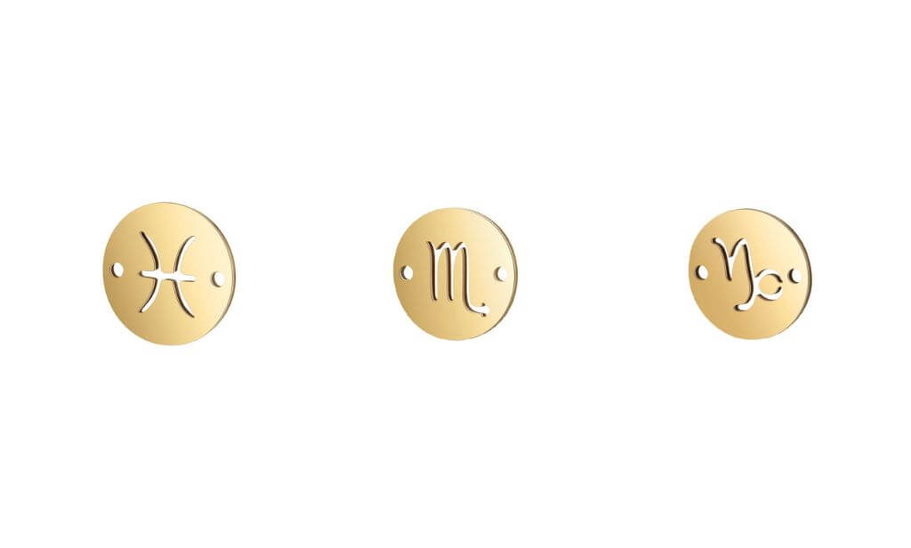 Zawieszki kółeczka z symbolami znaków to propozycja dla osób, które szukają czegoś niebanalnego i nowoczesnego. Wykonane są ze stali chirurgicznej w odwrotnej konfiguracji niż klasyczne monetki – znak zodiaku znajduje się w okręgu, a reszta przestrzeni jest wycięta. Zawieszki dostępne są w dwóch wariantach: srebrnym i pozłacanym. Każda ma 11 mm średnicy i praktyczne kółeczko, dzięki któremu można ją zawiesić na łańcuszku lub rzemieniu.
